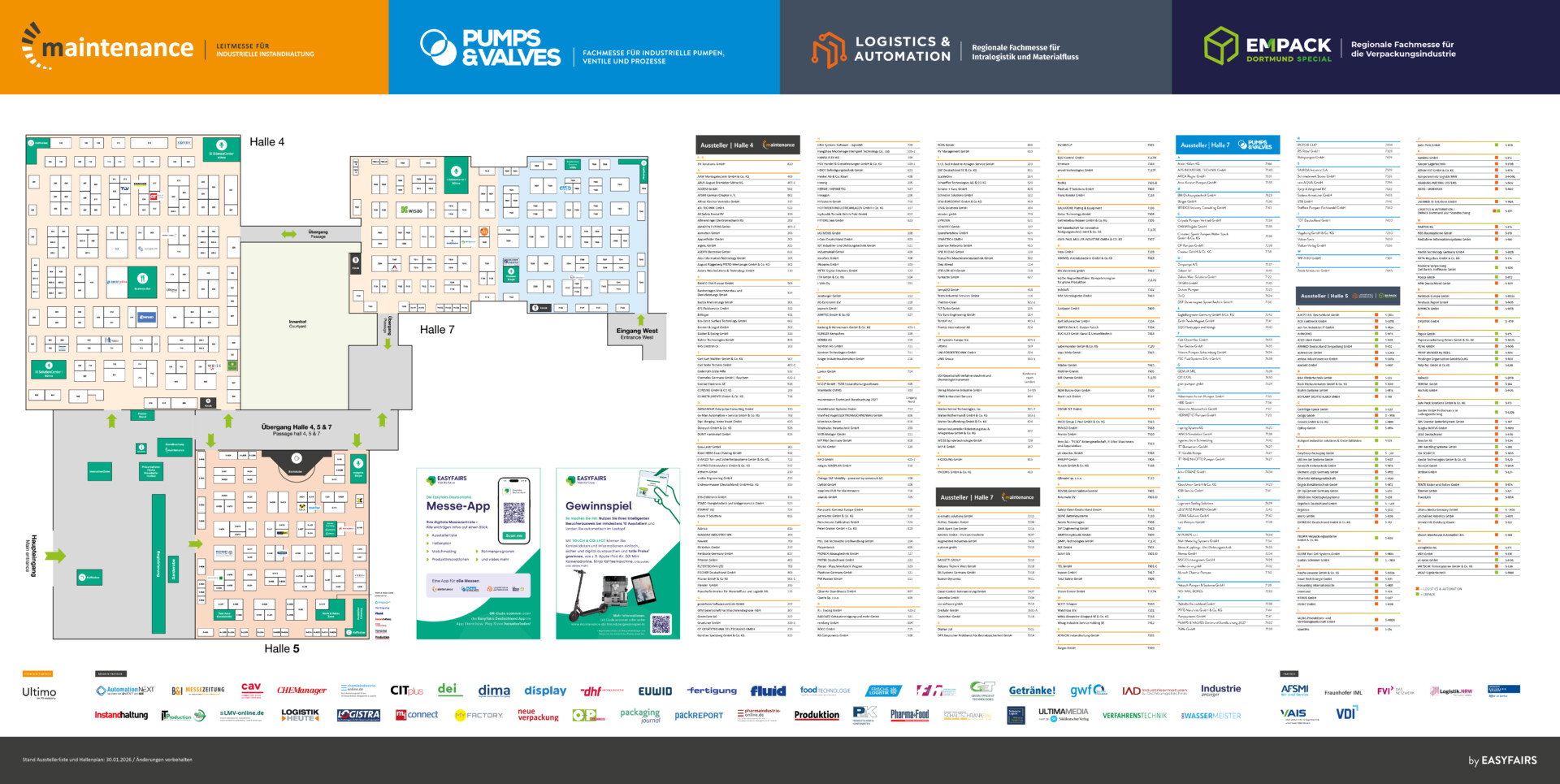 Holen Sie sich einen kompakten Überblick über vier Branchen hinweg und entdecken Sie neue Potenziale. Dazu bieten die PUMPS & VALVES und maintenance sowie die LOGISTICS & AUTOMATION mit dem EMPACK Special optimale Möglichkeiten. Und das extra früh, um noch mehr Zeit für die Umsetzung gemeinsamer Projekte im Geschäftsjahr 2026 zu haben. Seien Sie dabei!